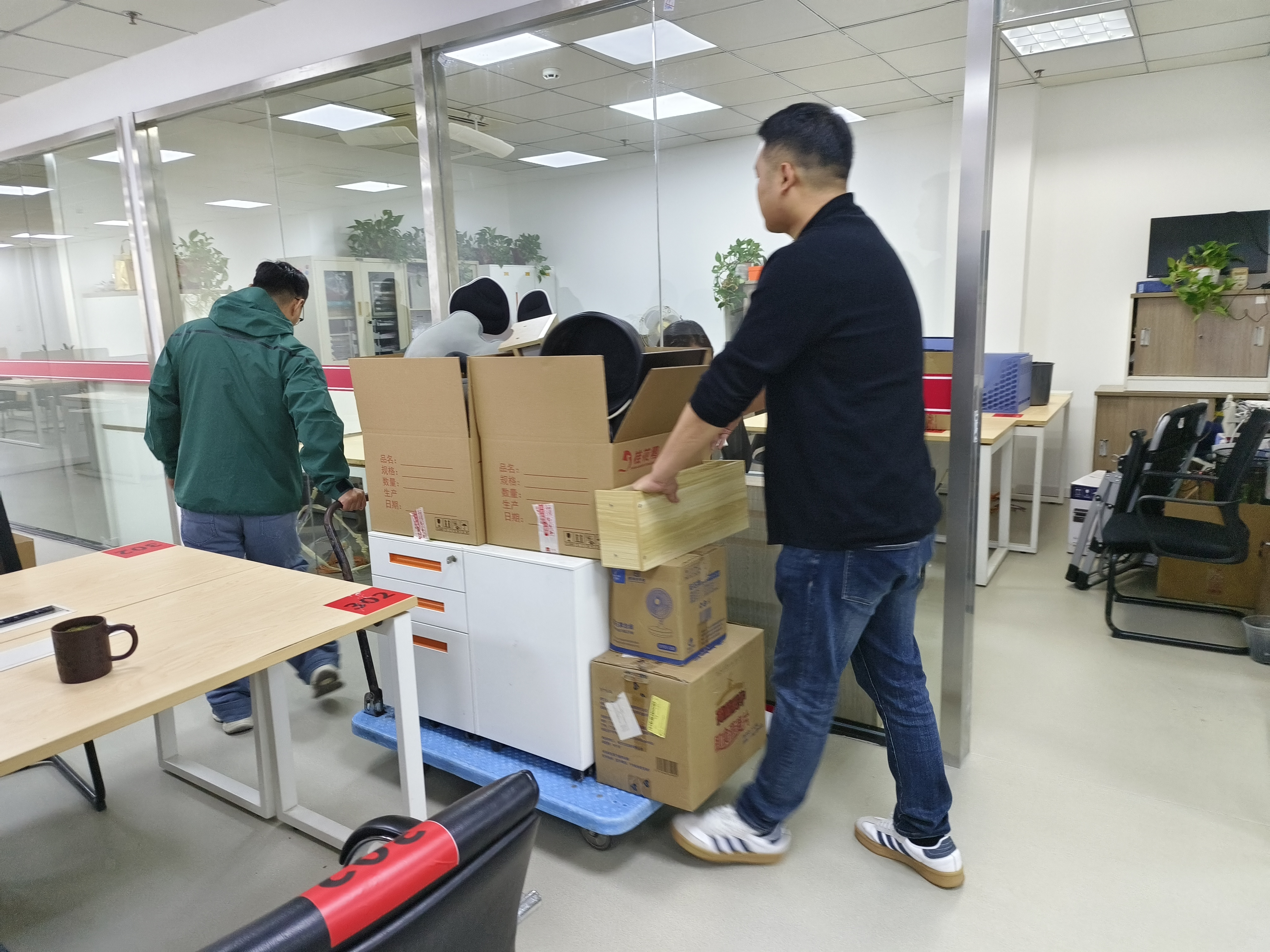 搬迁现场热闹而有序。市场部、门店部、大客户部、财务核算部、电商部等多个部门员工齐上阵:有人抱着一摞摞文件小心搬运,有人合力抬运办公桌椅,有人忙着归置零散办公用品……大家各司其职又相互搭手,从清晨忙到傍晚,终于在28日晚完成所有归置,确保次日正常办公。